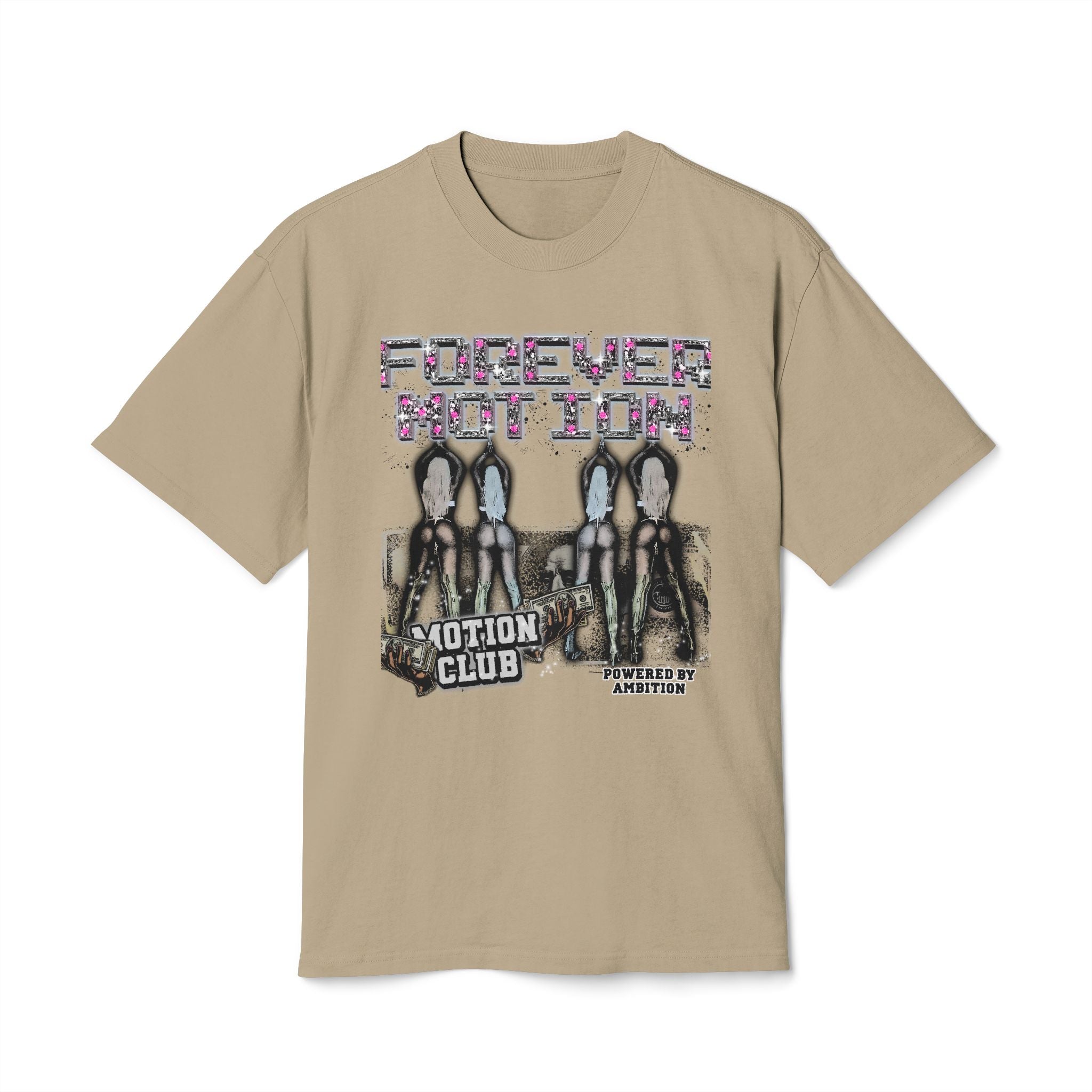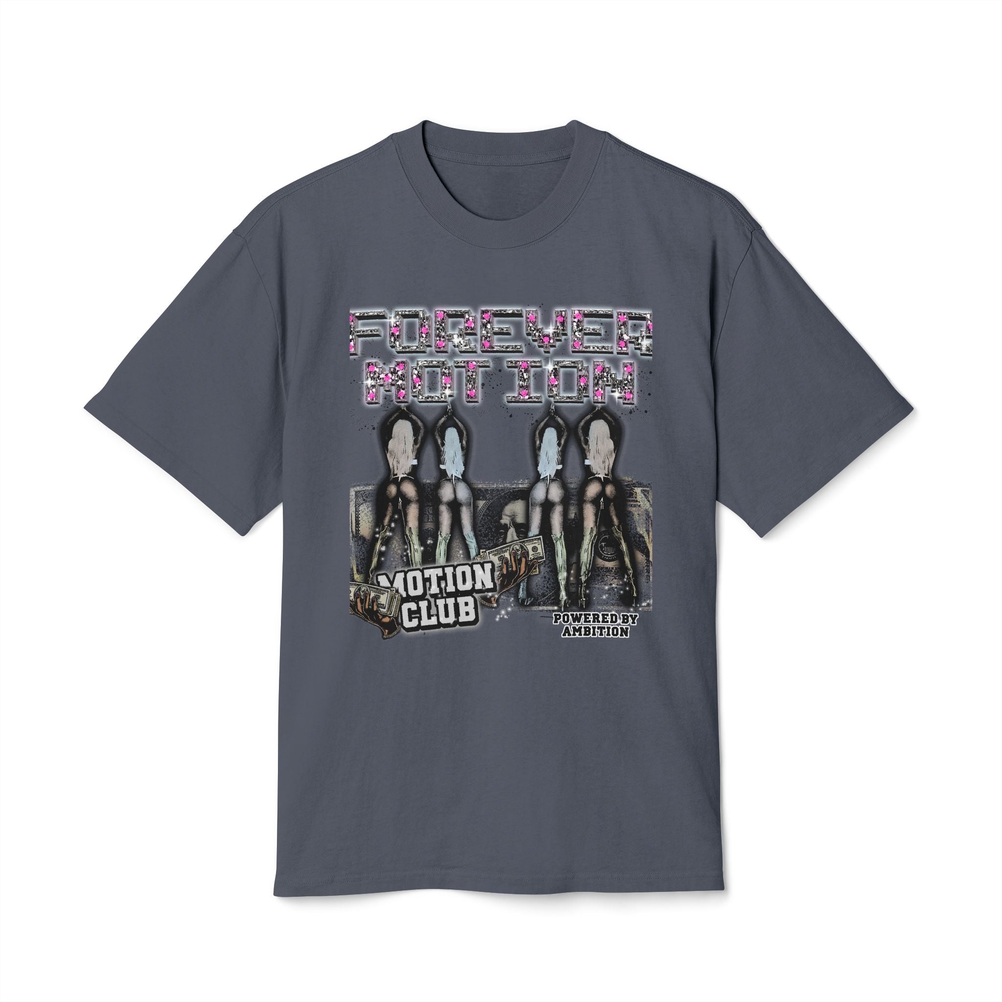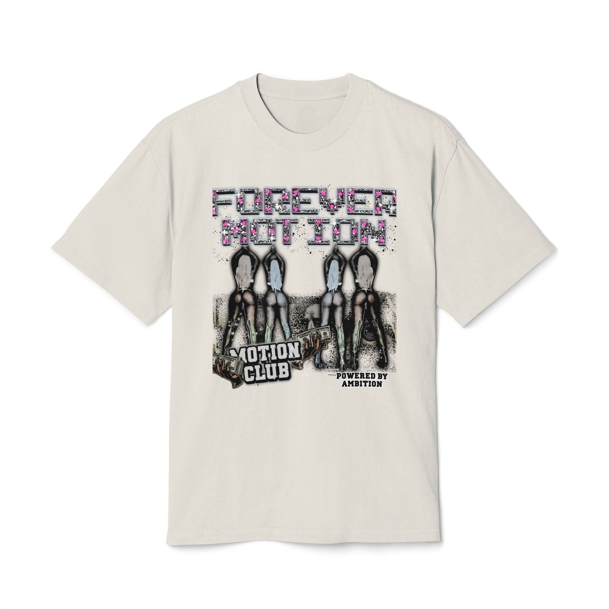 The Forever Motion “Motion Club Oversized Big Tee” offers a relaxed fit with dropped shoulders and a ribbed collar for a well-fitted look. Made for adults, this heavyweight tee is perfect for casual wear and lounging around. The faded edges and hue gradient give a vintage vibe, making it a great addition to any streetwear or athleisure wardrobe. Ideal for everyday wear, this tee is a must-have for anyone looking for a comfortable and stylish shirt.